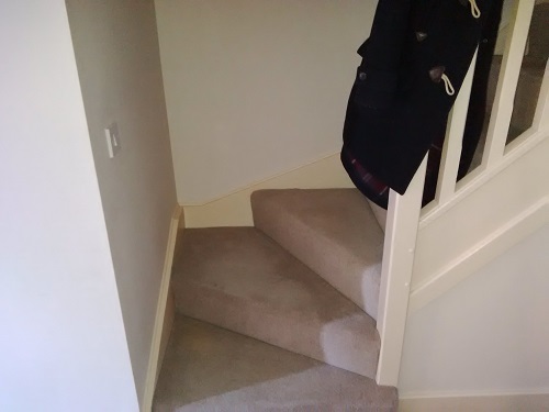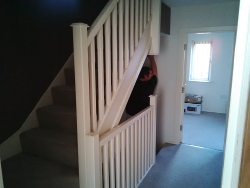 I've decided to write this article because we've had so many customers who we've had to leave their furniture (mainly 3 seater settees and bigger) in their garage or downstairs room. The stairs are so tight with newel posts going up and coming down from the ceilings that there just isn't enough space to manoeuvre. We've even had customers insist that their furniture got up there OK and when we've told them that it won't and they've decided to have a go for themselves they've got the furniture jammed, damaged it and put massive holes in the walls where the furniture has rammed into the plaster!