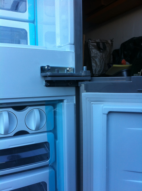Unless we are moving the fridge through some nice big double patio doors it's odds on the doors will need to be removed from the fridge. Generally these are wired up due to ice dispensers, LED's and so on. Remove the caps from the top of the fridge which are usually held on by bolts, and then unscrew the wires. The bottom part of the door will usually contain a water pipe. This is usually removed by squeezing the 2 plastic fixings towards each other and then the pipe will pull away.