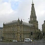 Halifax is a Minster town, within the Metropolitan Borough of Calderdale in West Yorkshire. It has an urban area population of 82,056 in the 2001 Census. It is well known as a centre of England's woollen manufacture from the 15th century onward, originally dealing through the Halifax Piece Hall. Halifax is known for its Mackintosh chocolate and toffee (now owned by Nestle), the Halifax bank (formerly Halifax Building Society), and the nearby Shibden Hall.